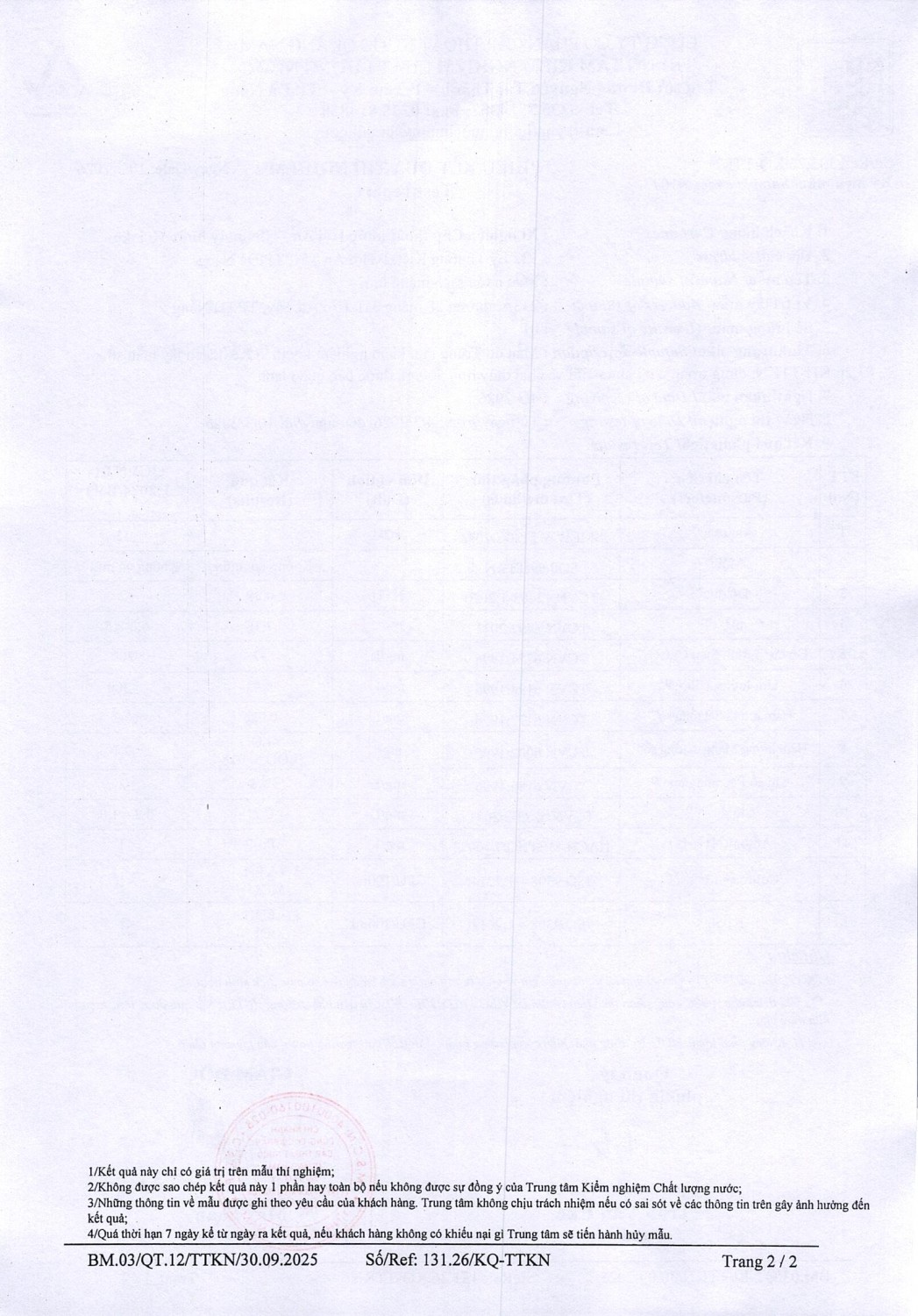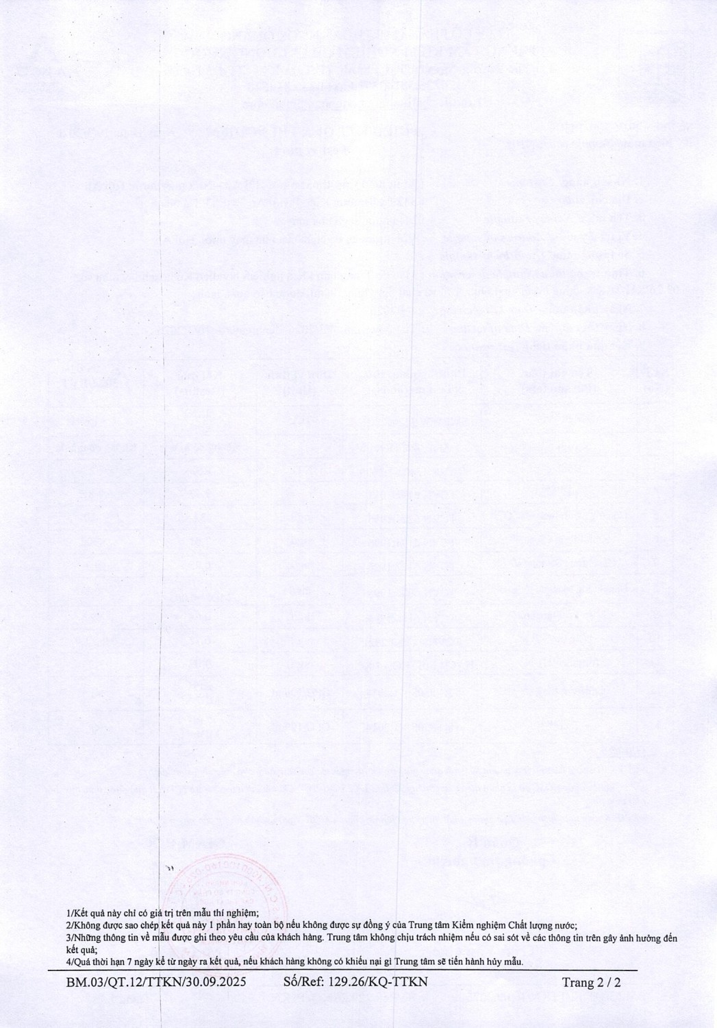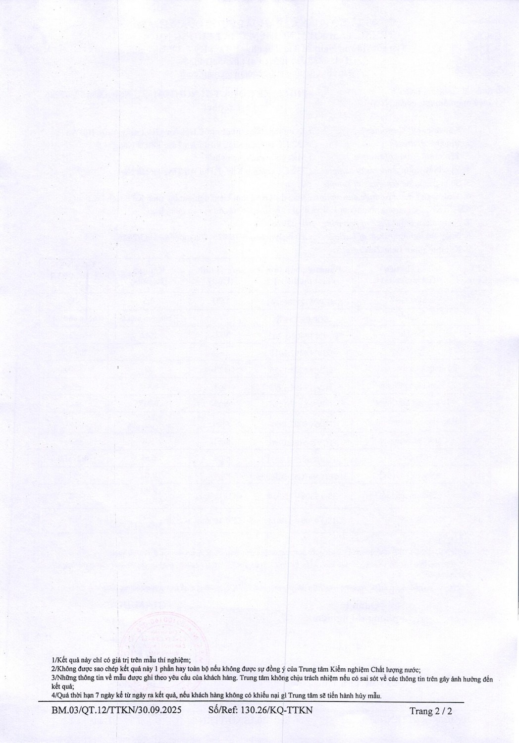 KẾT QUẢ CHẤT LƯỢNG NƯỚC XÍ NGHIỆP CTN HỘI AN - NMN HỘI AN ĐỢT 1 THÁNG 3 NĂM 2026