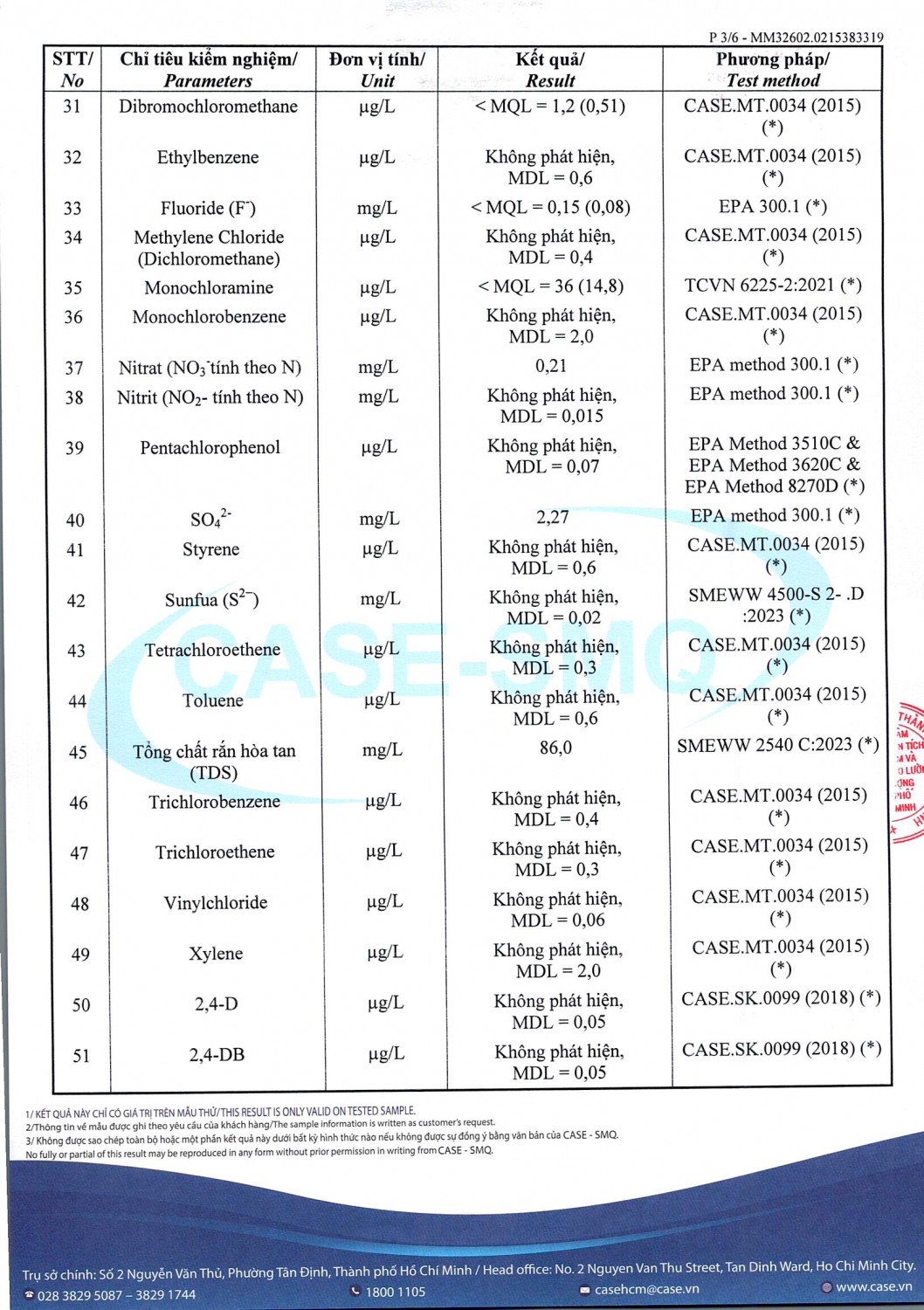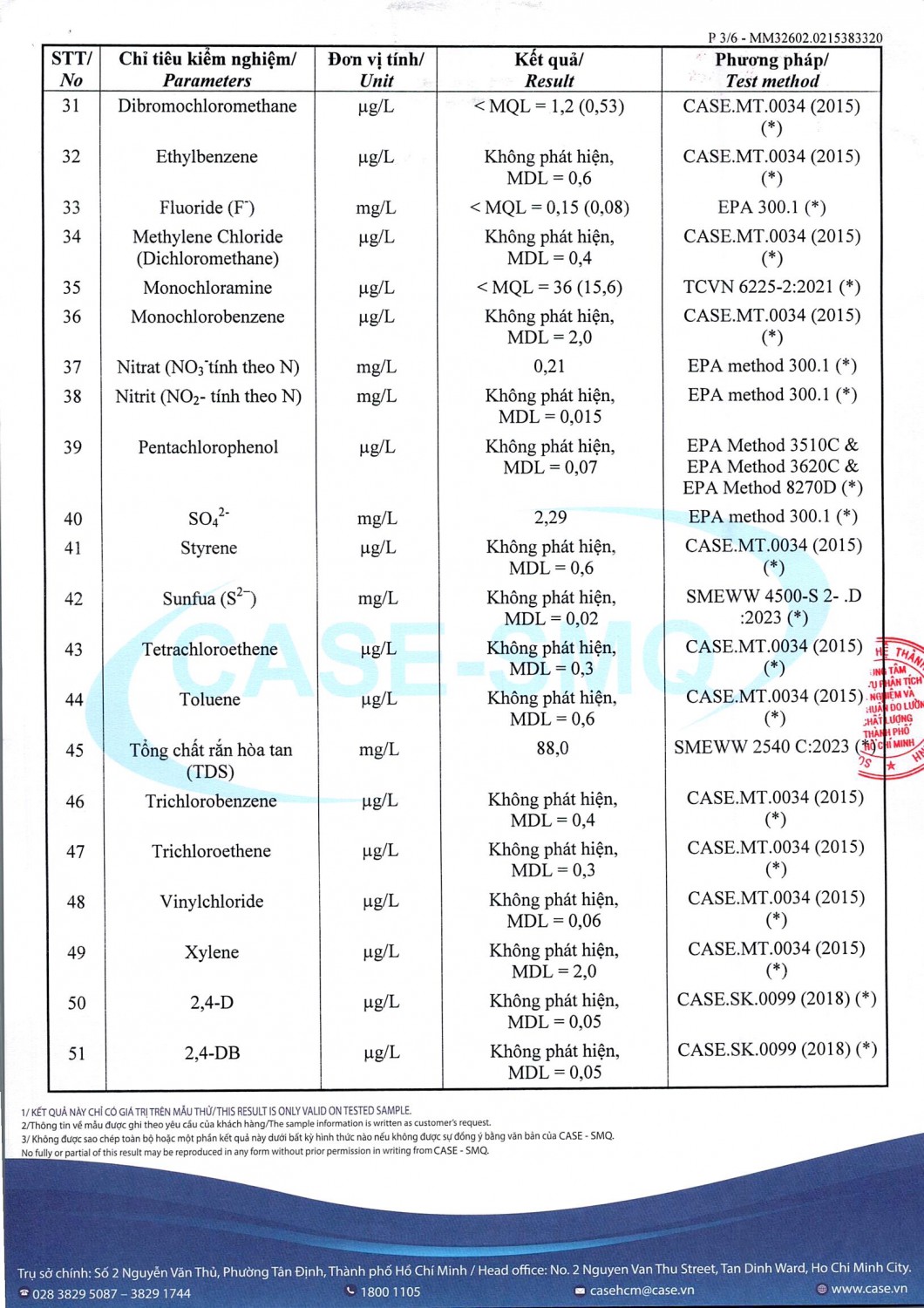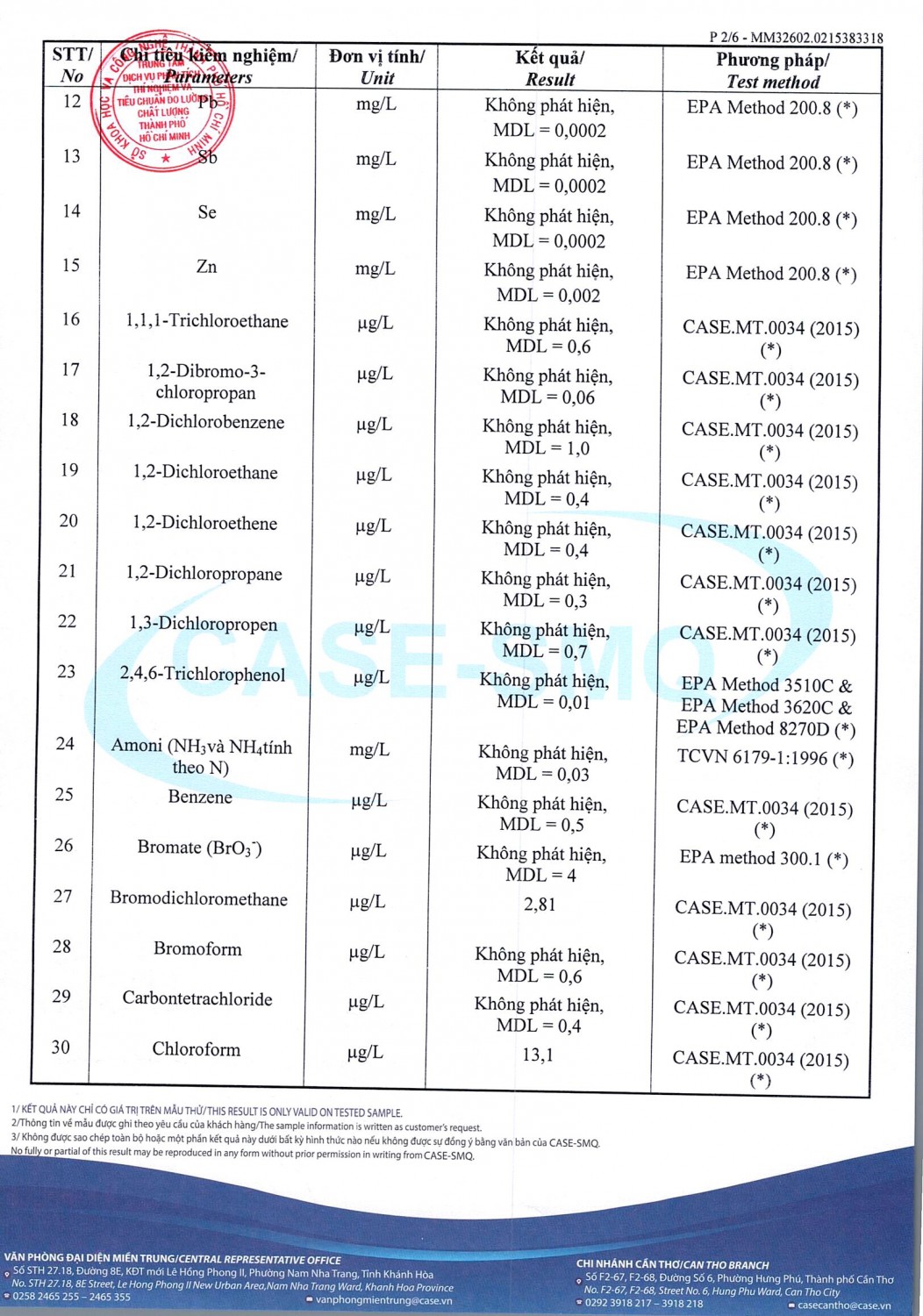 KẾT QUẢ CHẤT LƯỢNG NƯỚC CHỈ TIÊU B XÍ NGHIỆP CẤP THOÁT NƯỚC KHÂM ĐỨC - NHÀ MÁY NƯỚC NAM GIANG ĐỢT 1 NĂM 2026