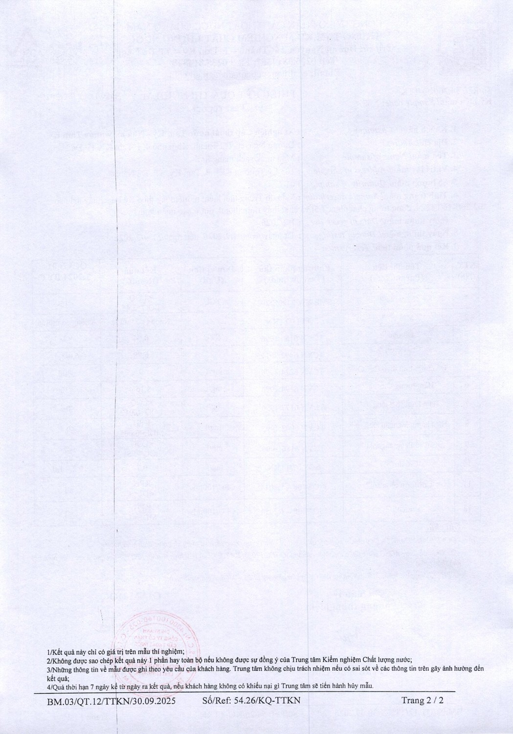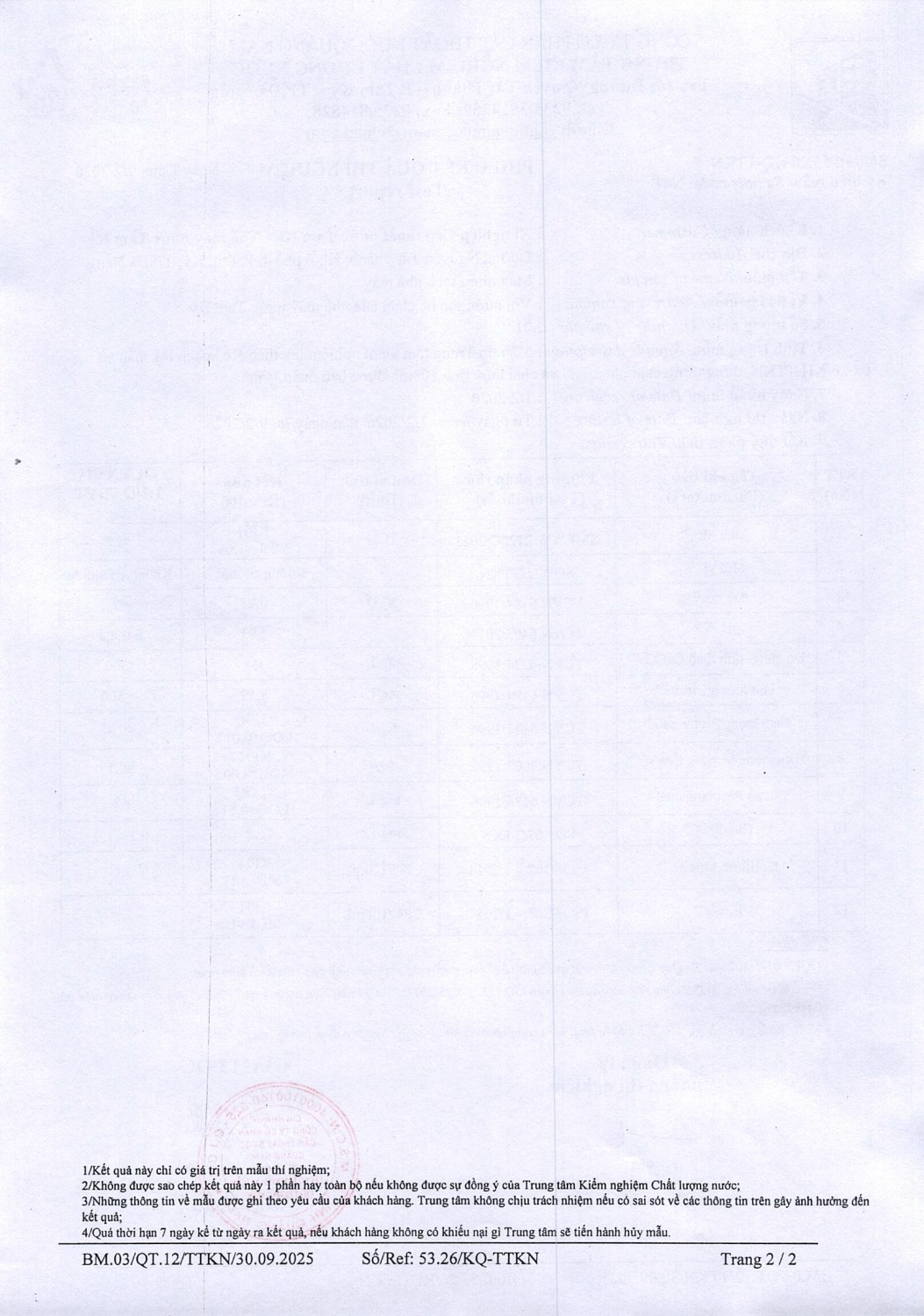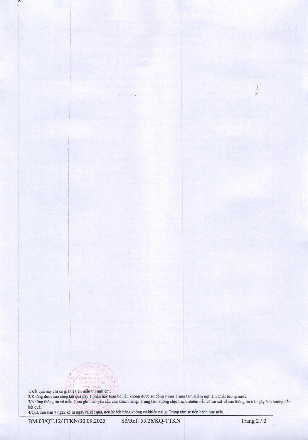 KẾT QUẢ CHẤT LƯỢNG NƯỚC XÍ NGHIỆP CTN TAM KỲ - NMN TAM KỲ THÁNG 2 NĂM 2026