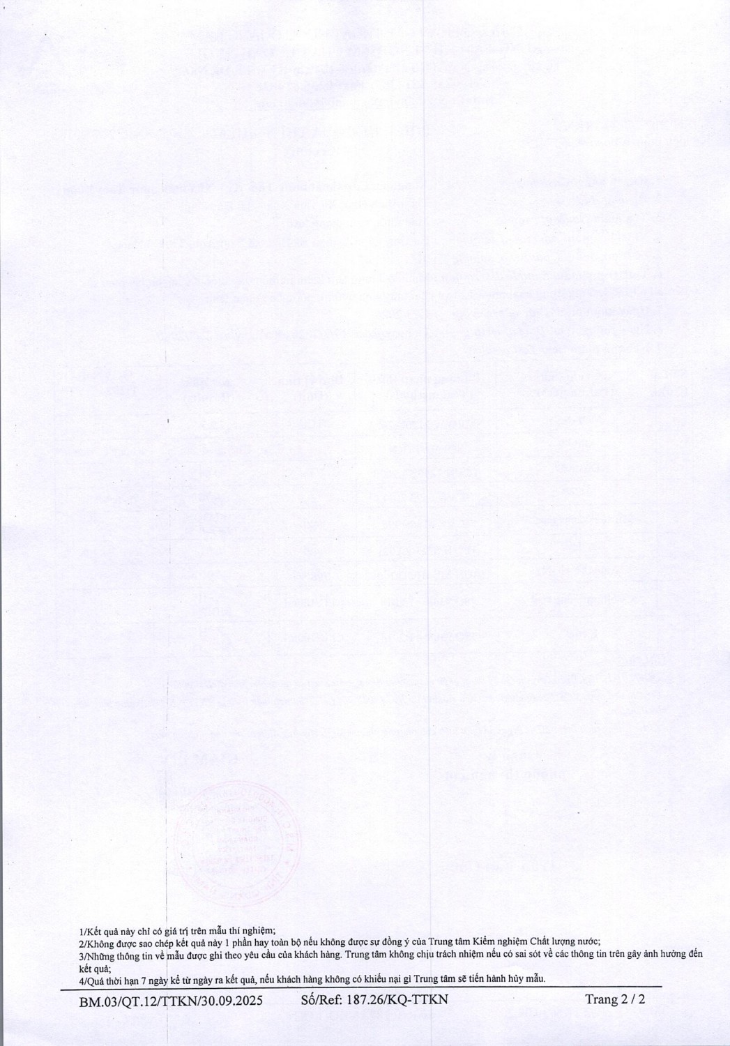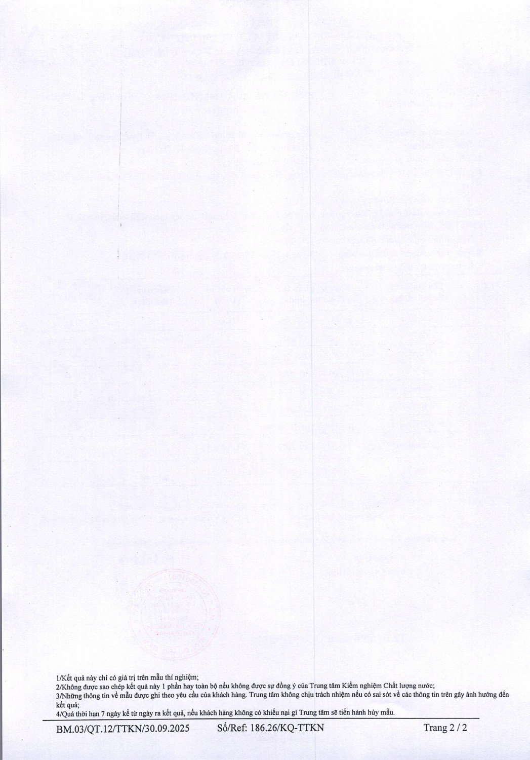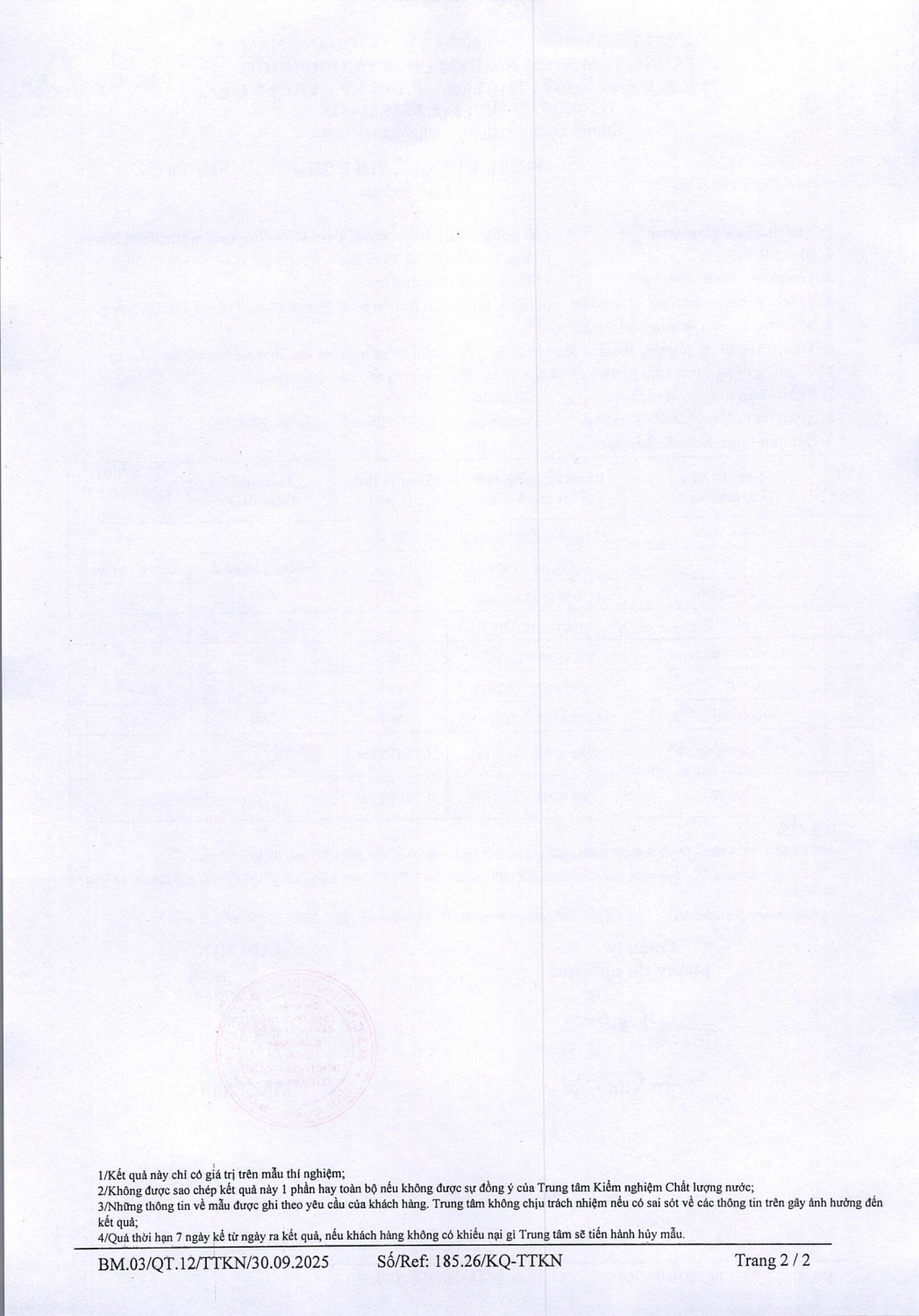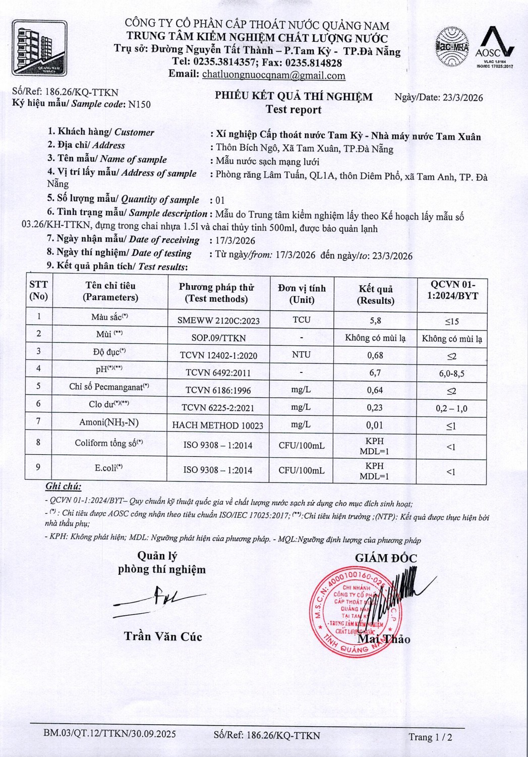 KẾT QUẢ CHẤT LƯỢNG NƯỚC XÍ NGHIỆP CTN TAM KỲ - NMN TAM XUÂN ĐỢT 2 THÁNG 3 NĂM 2026