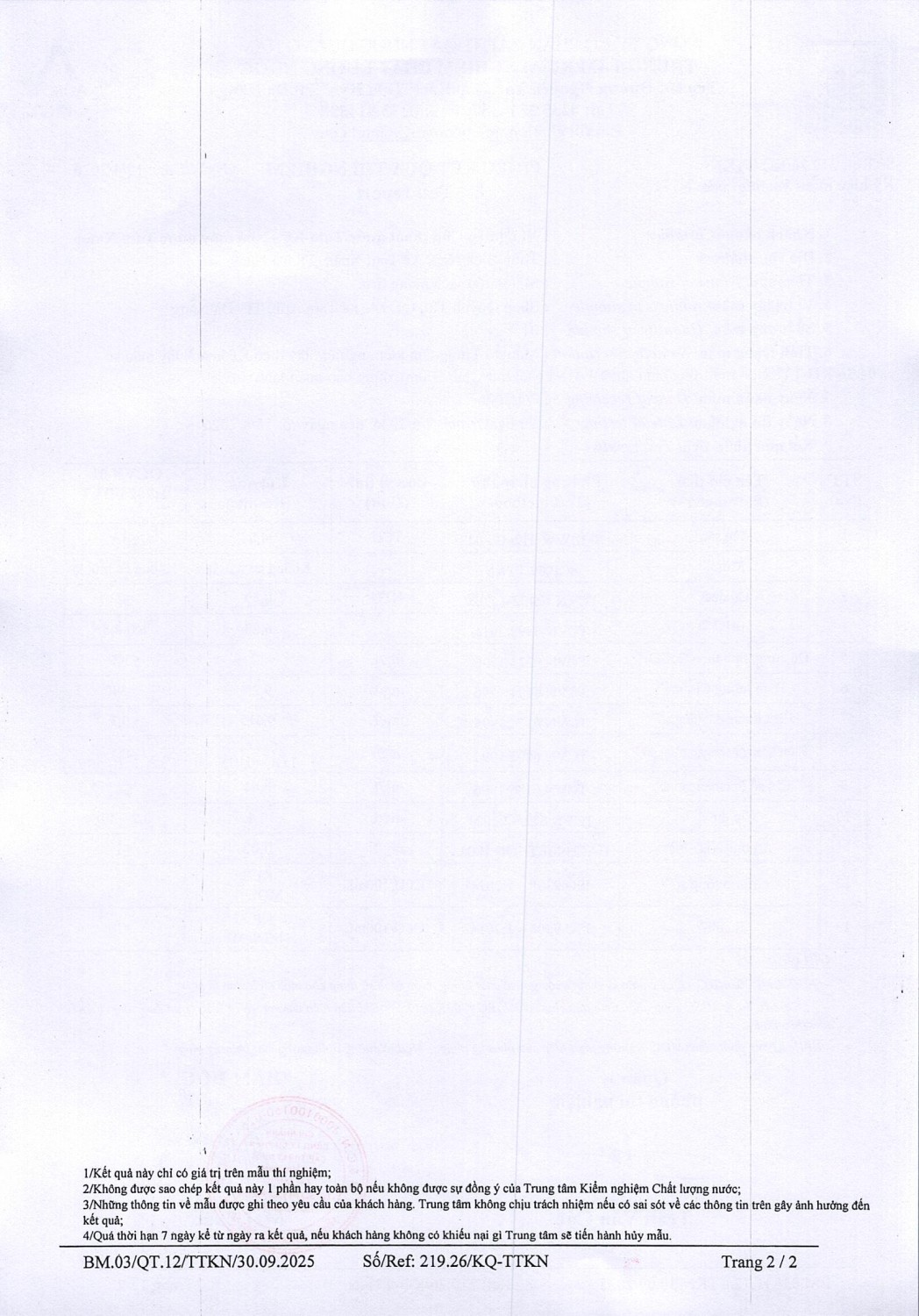 KẾT QUẢ CHẤT LƯỢNG NƯỚC XÍ NGHIỆP CTN TAM KỲ - NMN TAM XUÂN THÁNG 4 NĂM 2026