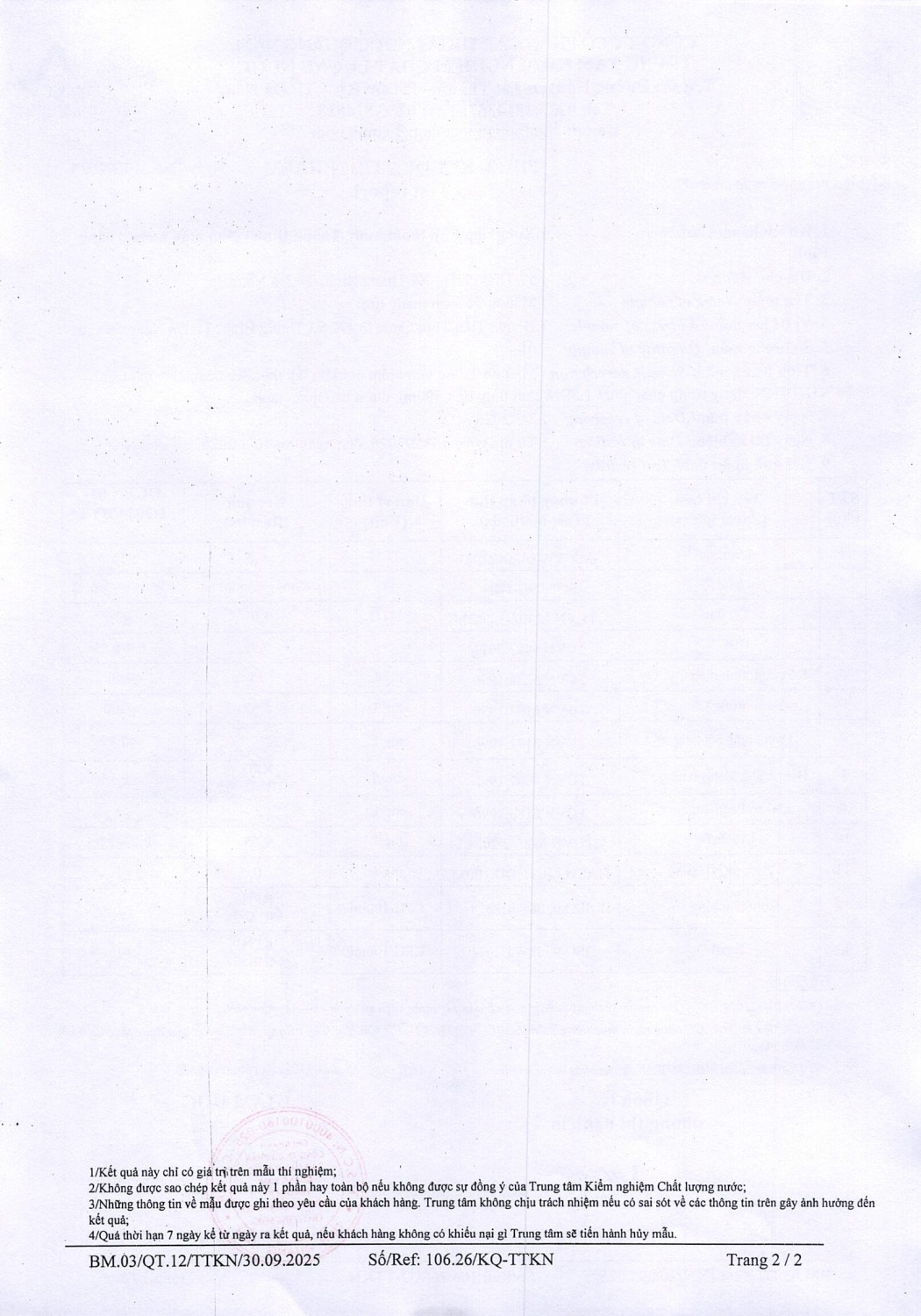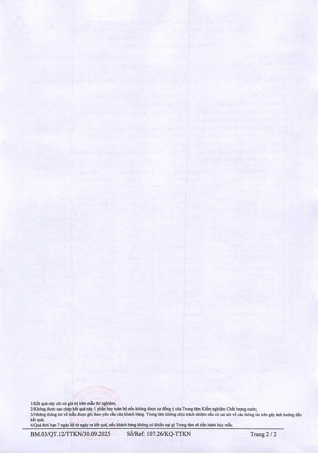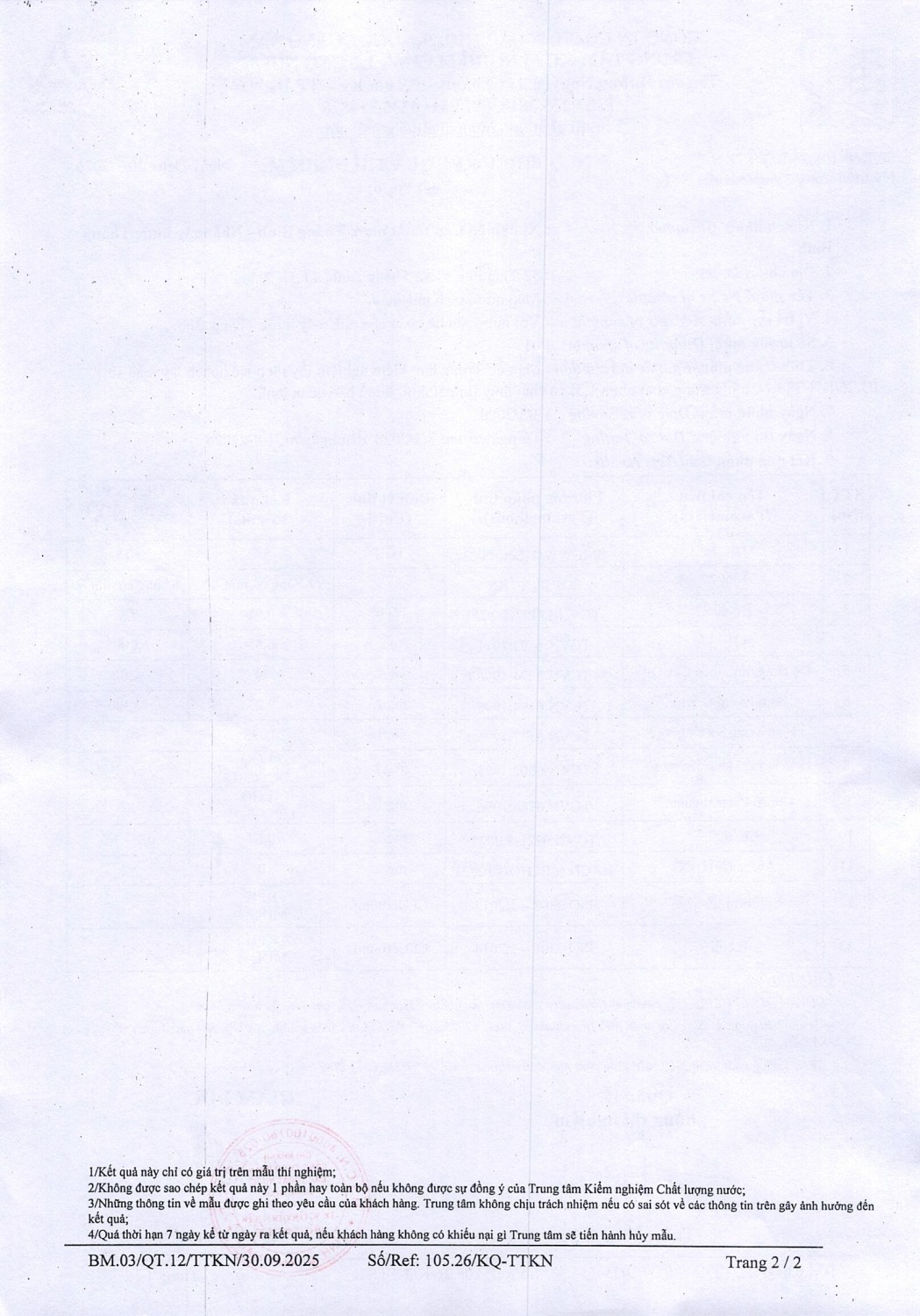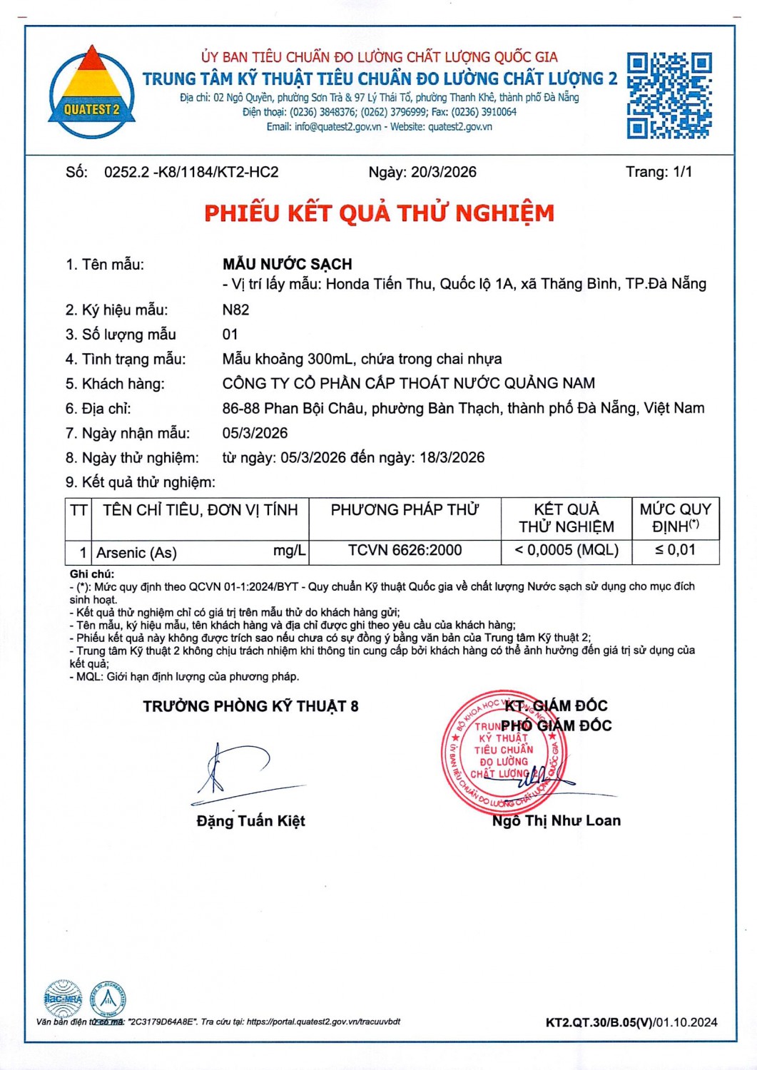 KẾT QUẢ CHẤT LƯỢNG NƯỚC XÍ NGHIỆP CTN THĂNG BÌNH - NMN THĂNG BÌNH ĐỢT 1 THÁNG 3 NĂM 2026