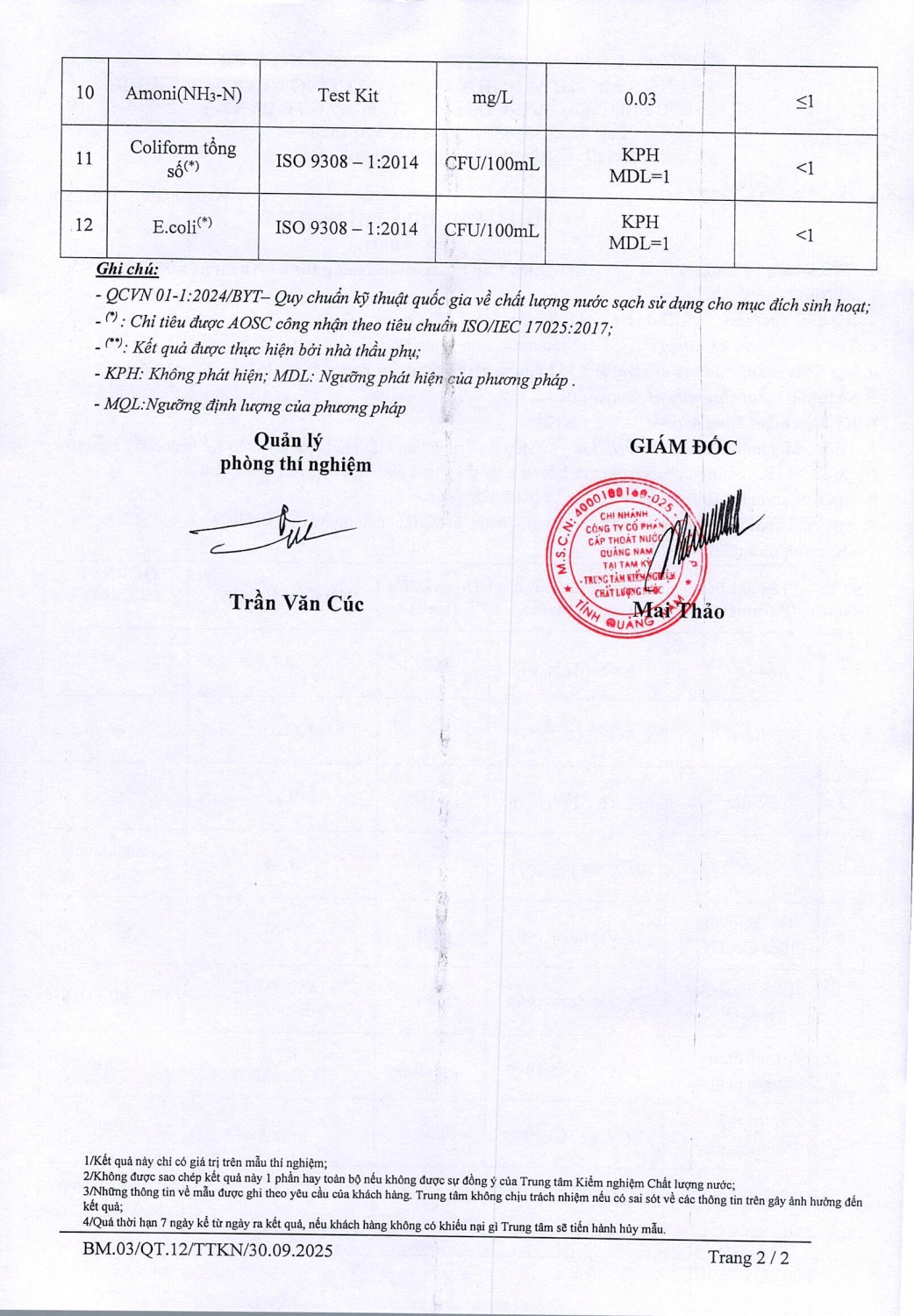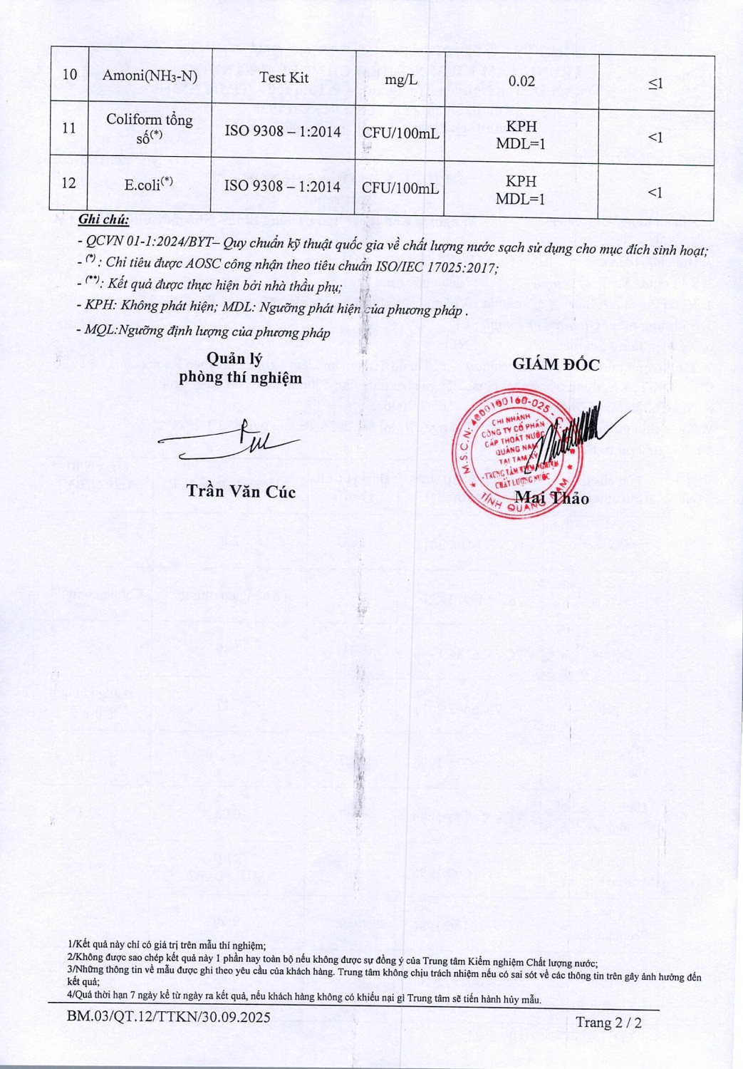 KẾT QUẢ CHẤT LƯỢNG NƯỚC XN CTN THĂNG BÌNH - NMN GÒ NỔI THÁNG 1 NĂM 2026